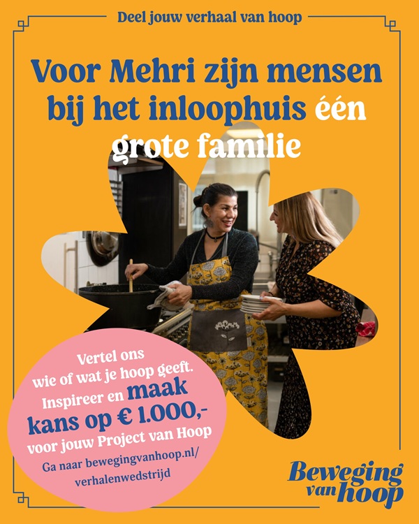 De verhalen kunnen tot en met 31 december worden ingestuurd. Op #Hopeful Friday vrijdag 16 januari wordt bekend gemaakt wie de prijs gewonnen heeft. Tijdens de tweede inspiratiedag van de Beweging van hoop maakt de jury de winnaar bekend. Iedereen die zich wil aansluiten bij de Beweging van hoop is van harte welkom tijdens deze inspiratiemiddag. Naast de prijswinnaars worden er ook projecten van hoop voorgesteld en zijn er diverse inspirerende sprekers, onder wie oud-gouverneur Theo Bovens.