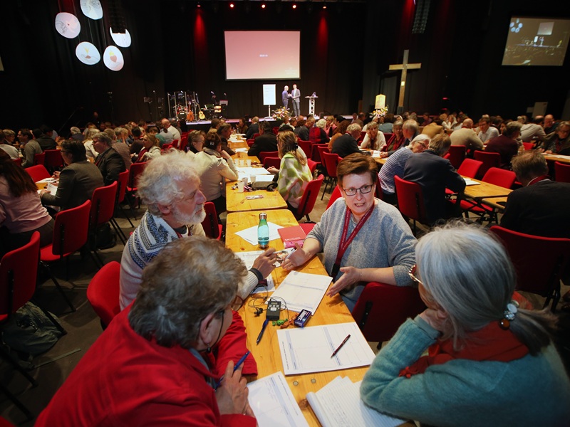 Tegelijkertijd hoopt het bisdom dat in parochies en andere kerkelijke groepen iedereen zoveel mogelijk in gesprek is over de toekomstvisie. Eigen initiatieven om de tekst te bespreken of om met de bouwstenen uit de brochure aan de slag te gaan, worden zeer op prijs gesteld. Dat gesprek kan informeel plaatsvinden, bijvoorbeeld voor of na de H. Mis in de parochiekerk of tijdens ontmoetingen tussen gelovigen. Het kan bewust ingepland worden tijdens de verschillende overleggen die lokaal en regionaal bestaan. Bisschop Van den Hout hoopt dat de toekomstvisie op deze manier door alle betrokken katholieken in Limburg gedragen wordt en het een gezamenlijke weg van alle gelovigen wordt, die levendig getuigen van hun geloof en samen bouwen aan vitale geloofsgemeenschappen.